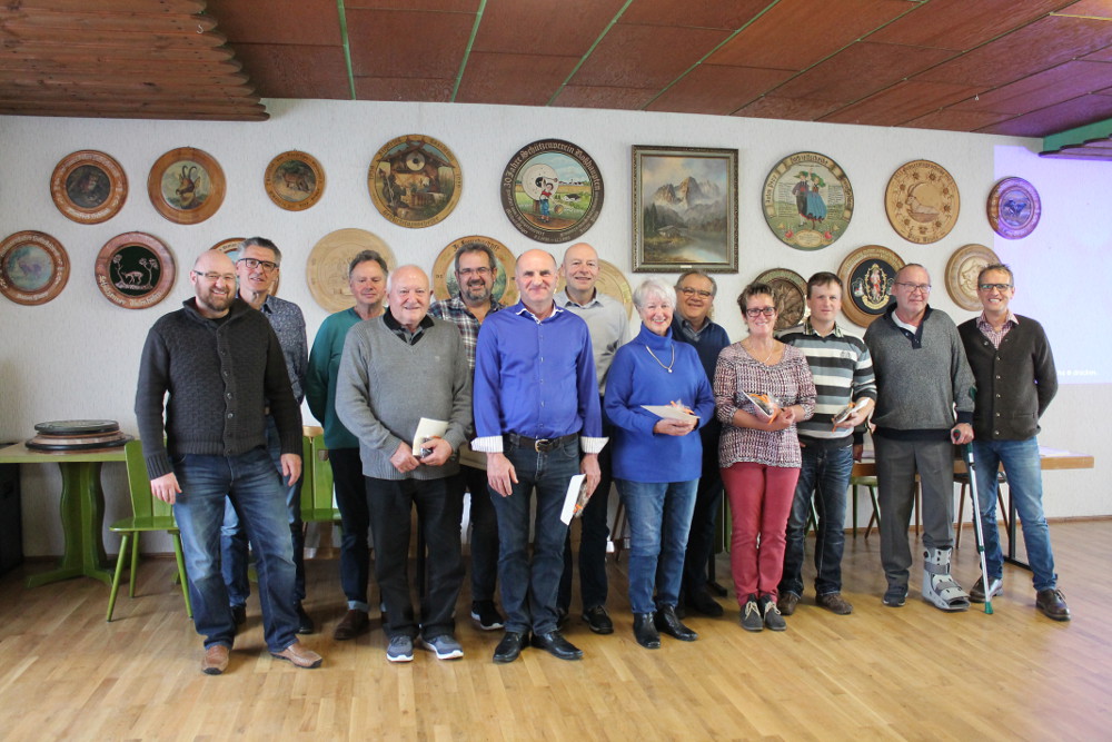 Hintere Reihe von links: Josef Brendle, Albert Brendle, Werner Weißenhorner, Johannes Nerdinger, 1. Bürgermeister Hans Brendle, Benjamin Pohl, Franz Brunner und 1. Vorsitzender Ralf König.
